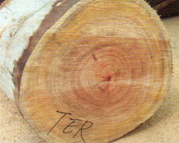 心邊材區(qū)別略明顯。心材紅褐色至淺褐色,有時帶淺黃色調。邊材色稍淺。生長輪略明顯。